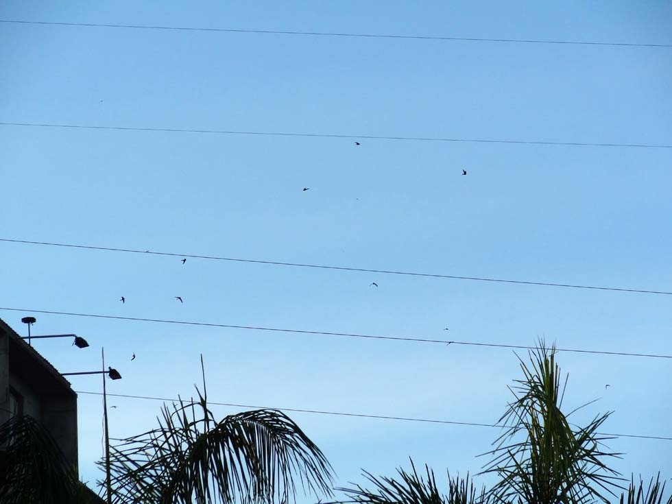 Hundreds of swiftlets are flying in and out of the bird house.   Typically, they leave the 'cave' during the day to forage and return to their roost at night.   Swiftlets mainly feed on insects, seaweed, and whitebait fish. |